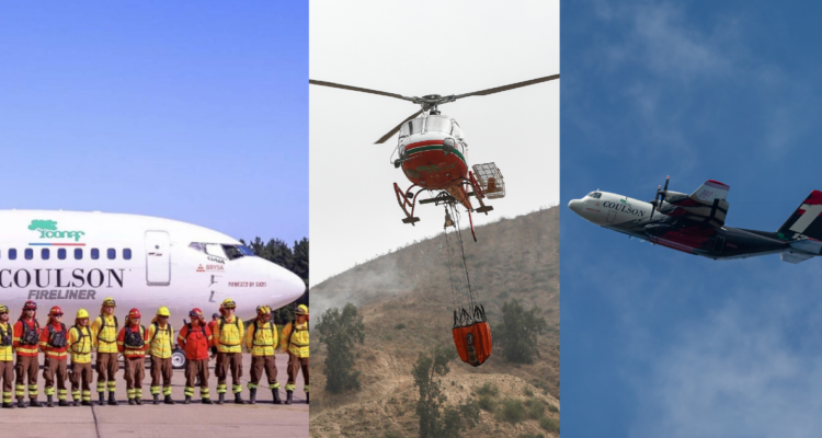 Conjunto de aeronaves coordinadas por el Servicio Nacional de Manejo del Fuego de Argentina, incluye ...