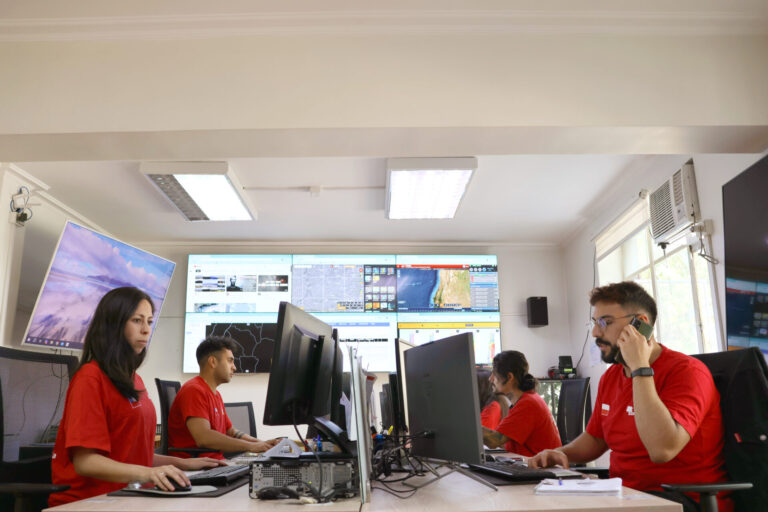 Central Nacional de Coordinación (CENCO) en Santiago, que monitorea la situación nacional y dispone ...